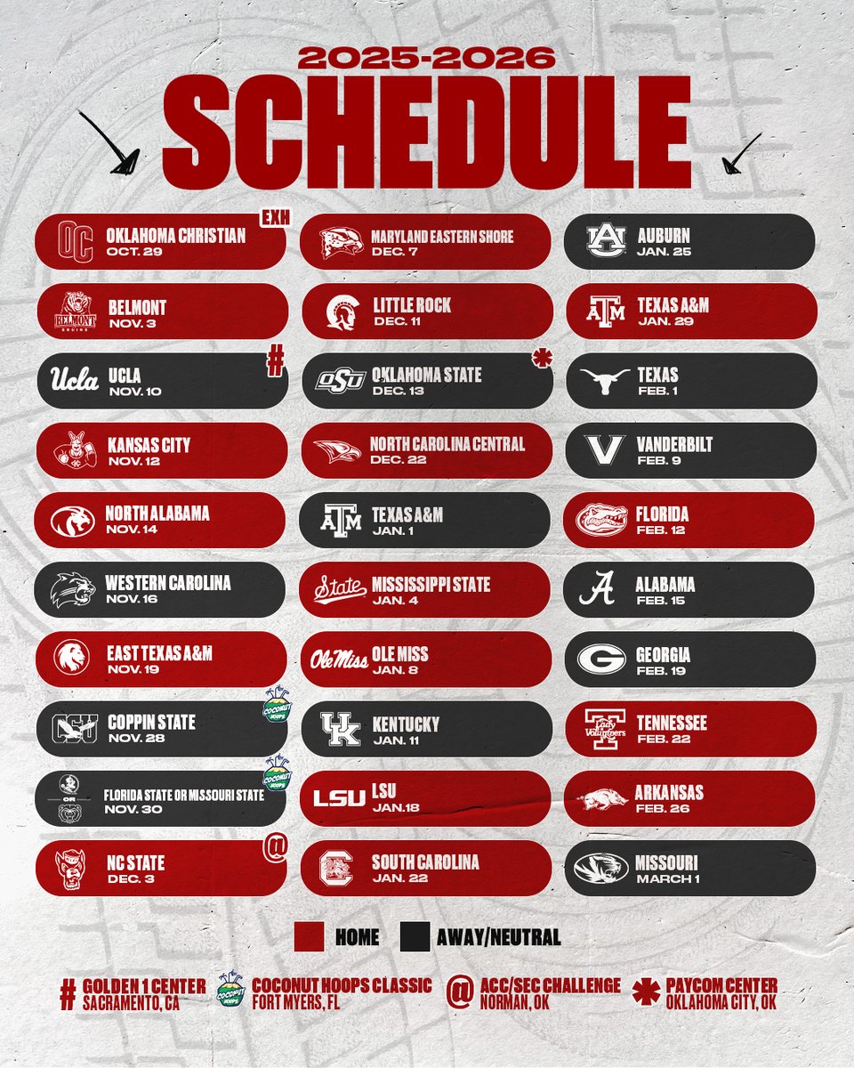 Lock in your seats at Lloyd Noble Center and help create the home-court edge that makes Norman special! Coach Jennie’s Sooners – ranked No. 6 in ESPN’s preseason poll – return All-SEC standouts Raegan Beers and Payton Verhulst, alongside junior star Sahara Williams and freshman Aaliyah Chavez, the nation’s top-ranked recruit and unanimous National Player of the Year. With five preseason top-15 opponents coming to Norman, every game matters – and so do you!